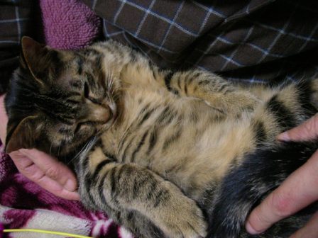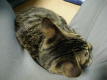 今日は、相方は仕事が休みだったのだが、ものすごい勢いで甘えられたらしい。部屋のどこに行ってもついてきたらしく、ごえもん2回ほど踏まれたらしい。最近は、相方の股間と、胸の上がベスポジらしい。巨乳じゃないけど、やっぱ多少なりとも柔らかいとこがいいんだろうか。 悔しいから、無理やり持ってきたら、そのまま寝た。横ポジションは初めてかな。この日記を書いてたら、ごえもんが、ブォンブォンいって走り回りだした。昼間も寝てたみたいだし、こりゃまた寝ないな。。