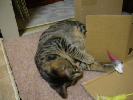 今日は、相方の力作をご紹介wティッシュの空き箱を左手に、デジカメを右手に持って撮ったそうな。とりあえず、手を出すとこがいいねwむ、よく見たら、また爪が伸びてきた。そういえば、昨日寝る時に、寝室のカーテンにぶら下がってたなぁ。爪とぎも、最近使ってるところを全然見てない。。orz起きてる時は切らせてくれないし、寝起きを襲って、ボヤーッとしてるところを狙うしかないなぁ。なんかコツなぞないんだろうか?