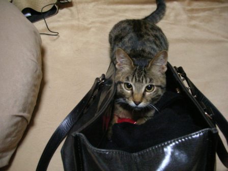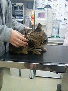さてさて、本日もママの代筆で失礼します。パパはおうちで仕事しようと思ったら、なんとWindowsにログインできなくなっちゃっていて、いまあおーくなりながら復旧作業してるもので・・・カワイソーニ・・・今日は、2度目のワクチンを打ってもらいに病院へ。行く道中、「にゃーっにゃーっ」と、かなりデカイ声で鳴きまくり・・・・ネコさらいみたいでした(^^;)体重を量ってもらったら、な、なんと!!2.7kg~ホント大きくなったねー、ごえもん。最初はハナタレだったしお腹こわしたりして心配したけど、ママはうれしいよ。まーでも、診察台の上では相変わらず腰引けてたけどね(^^;)ねーママ、逃げていい?ワクチンのせいか、その後はちょっと元気がなくそのまま寝て曜日に突入。あ、いつもか(^^;)ちなみに昨日は、こんなにヤンチャでした。ママのバッグって、入り心地いいんだよねーネコじゃらし持ち込んじゃおーな、なんだこの穴?!気になる・・・気になる・・・・・にゃごっ!はふ~電気コードで遊んじゃダメってママに言われてるからちょっと乗るだけだよ、乗・る・だ・け(^^)今日もやっぱり、ごえもん命なパパとママでした。