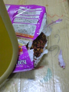 こんばんは、ごえもんママです。ことのはじまりは、先週の土曜日。パパは休日出勤、ママはお昼から実家の家族たちとお出かけしており夕方、ママが帰ってくると。な、なんと!ヤラレタ・・・orzどのくらい前に侵入したのか定かではないが 今さら叱ってもゴエにはわかるまい。 しかし、今後のためにも叱らないわけにはいかぬ。 てことで、侵入禁止区域である台所への侵入と盗み食いの罪で 「ママがすぐそばにいながら完全無視の刑」に処されました。 どんなにスリスリしても、なごなご鳴きじゃくっても ママはまったく無視。 しばらくはママのオシリにあたりにそっと背中をくっつけて 悲しそうにうずくまっていましたが、やがて寝てしまいました。 クーっ、これがまたカワエエ笑よく言い聞かせたから、わかってくれたと思うんだけど・・・しつけって、ホント難しい。そして、昨日。仕事から帰ると、いつものようにごえもんがにゃごにゃご言っている。「ごえたん、ただいま~~・・・・・ん?!」な、な、なんと!!! ヤ、ヤラレタ・・・orzこんなアルミちっくな袋ごと食べたのかよ~Σ(|||▽|||)うちではカリカリが3種類用意されているのだが(パパがごえもんにアマアマなんだもん)中でも一番のお気に入りであるロイヤルカナンをチョイスしているあたり、さすがと言うべきか・・・本人は怒られてシュンとしてはいるがいたって元気な様子なのがまだ救いだ。周りをよく見ると2回ほど袋の残骸を吐いた跡もあるしとにかく、かかりつけの病院へ電話して相談。本人が元気そうであることと、ふつうに水飲んだり遊んだりもしているので、このまま様子をみることに。すでに診察時間は終わってしまっていたが、先生はとても丁寧にわたしの話を聞いてくれた上に「まだカルテ整理とかがあって病院にいますから、1~2時間後くらいにまた電話しますよ。そのときの様子で、ここで何らかの処置をするか救急に行くかを判断しましょうか」と言って下さった。先生、ホントありがとうございましたm(_)m看護士してたくせに、自分ちの子となると急に自信がなくなって不安になっちゃって我ながら情けなかった・・・ガックリ。しかも、数日前にヤラレていながら、まだ届くところにカリカリを出しておいたことを後悔&反省。ごめんね、ごえたん。前回は吐いたりしてなかったからって油断しちゃったママがいけなかった。もっと気をつけるからね。幸い、今日はママが仕事が休みだったので一日一緒にいられたけれど、ぜんぜんフツウでした。フー、よかった・・・あとはウンチがちゃんと出てくれることを祈るばかりです。そろそろ、いつものウンチタイムです(^^;)