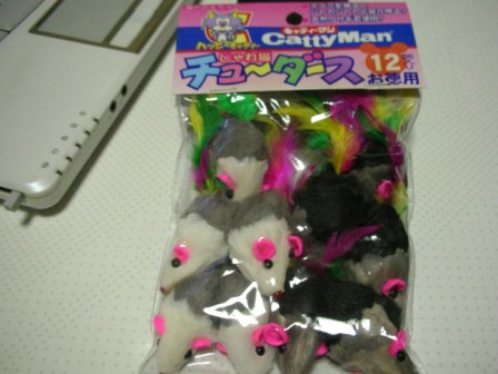 昼間一人ぼっちにされると、やっぱり寂しいんだなぁ。ひとしきり相方にくっついて回った後、股ぐらで寝てしまったらしい。股ぐら、安心するのもあるのかな。で、相方がテレビでポチたまを見てたら、なんだか食い入るように見てるwいったい、何にこんなに反応したんだろう。目ぇ剥いてるんだけどww昨日、本屋に行った帰りに、近くのディスカウントショップで、ねずみのおもちゃセットを買ってきた。12匹入りのお買い得品だ。食いツキがよかったので、動画にしてみた。ちょっと長め。やっぱり気になる既に2匹あげたんだけど、2匹ともどっかにいっちゃったんだよなぁ。ごえもん、まさか、食べてないよね?