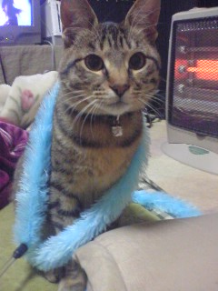 ごえもんパパは、Wiiの「ゼルダの伝説」に夢中。なので、ごえもんママが代筆で。今日はけいたんがごえもんの顔を見にやってきてくれた。しかーし・・・やはりごえもんはビビリまくり。ねこじゃらしでがんばってご機嫌をとったおかげで後半のほうでやっとちょこっとだけ出てきたけどそれでも毛布をかけたパパの膝の下でひっそりあたたまっていました。こまったお子だ(^^;)ま、そんなところもまたカワイイんだけど。ごえもんは、耳が大きい気がする。立派な耳だ。ビビリだからか大きいからか、よく動いているように見える。前よーし。横よーし。ん?うしろは大丈夫か?ごえもんセンサーは、今日もフル稼働で知らないやつが近くにいないかチェックしております笑いまは、新しくおろしてもらったチューダースで大興奮!今日はちゃんと寝てくれるかな・・・(^^;)