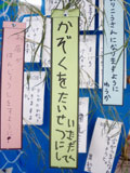 本日は七夕ですね。天気が悪くて織り姫と彦星が会うことできなくて気の毒です。母上は「どうせ宇宙はいつだって快晴だ。毎年会ってるんだ。」と言っていましたが。理系の女ってこれだから嫌ですよねぇ。夢がなくて。皆さんも短冊にお願い事を書いたりされたのだと思いますが、先日、ショッピングモールでこんな切なるお願い事を見かけましたよ。 左の短冊は何とも気の毒で言葉が出ませんね・・・。敬語なところがまた涙を誘います。右の短冊の願い事が叶えられることはあるのでしょうか。ヨッシーってゲームのキャラクターですよね。想像上の生き物ですし、そもそも類が異なります。人類でなくて爬虫類ですよ。・・・たぶん。ちなみにちょっすんのおうちの短冊はこんな感じです。 左から母上、父上、ちょっすんです。母上は現実的ですね。夢がないとも言えますが。父上は非現実的ですね。叶えられることはなさそうです。ちょっすんの短冊は一番右以外は母上に代筆していただきました。一番右のは一番気合いが入っていますからね、母上に支えていただきながら書きましたよ。これは・・・なんでしょうね。ちょっすんにはよく分かりません。本日、もう一つ記事がありますのでお見逃しなく~。 ←ランキング上位にあがりますように~