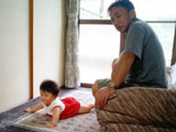 最近、父上と母上の元気がありません。早朝から深夜まで一緒に遊んで差し上げているのですがちょっすんが不足しているのでしょうかねぇ。愛情一杯に接して差し上げているのに父上も母上も欲深いことです。少し気合いを入れたほうが良いかと思いまして、ちょっすん酸を父上の頭に振りかけてみました。振りかけた後、なじませてよく叩き込みます。父上、気合いが入ったようですよ。溜まっていた仕事も一気に片付いたようです。ちょっすん酸の威力、恐るべし。あとは布団に潜ったまま出てこない母上の気合いを入れるだけなのですがミルクを投入され、気がついたらちょっすんは夢の中でした。しかしおかげで体力が回復できました。日中、母上とはあまり遊んで差し上げられなかったので今夜はたっぷり母上のお相手をしたいと思います。 ←3、2、1、ハッスル!ハッスル!