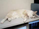 一昨日、ちょっすんが寝静まったのを確認して父上がこそっと出かけた様子でした。なにやら「カツだね。カツんだよ。・・・いや負けた。」と意味深なことを言っていたようです。またちょっすんに黙ってこそっと贅沢をしたのかと思ったのですがどうやら「お好み焼き風とんかつ」という奇妙なものを食べたらしくげんなりしていたようです。バチがあたりましたね。ところで一時、もはやこれまでかと懸念されたごっすんさんですがなんとか持ちこたえてくれたようです。ま、ちょっすんの腹に収まる運命は変わらないわけですが。 マダムも健やかにくるくる巻き巻きしております。このマダムも巻き巻きくるくるしております。巻き巻き巻き巻き・・・・。 ←クリック、クリック巻き巻き・・・