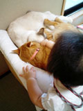 体調はおかげさまでだいぶ良くなりました。熱も下がりましたが、声がガラガラで鼻水ずびずばでセレブからほど遠くなってしまったのでセレブ感を取り戻すために大人しくしていますよ。あまりの大人しさに、母上が「いつもこれくらいだといいんだけど・・・。」と言っていたくらいです。失礼極まりないですね。早急に元気を取り戻して美声を近所中に響き渡らせたいと思います。さてと。今日はちょっすんが生まれる前の猛獣たちの画像を載せたいと思います。ちょっすんが不調な時ぐらいは、脇役の猛獣にスポットライトを浴びさせてあげようと思いますよ。本当に心優しき乳児ですよね。ちょっすんが産まれるまでは猛獣達はまさにこの家の愛玩猛獣だったようで父母に非常に可愛がられていたようです。この家に来た頃の黒猛獣。自分を人間だと思っているのでしょうね。だらしなく寝っ転がっています。この後に白猛獣に襲われて血のスタンプを床のあちこちに押す羽目になったらしいですが。こちらは父上の腕枕で茶猛獣と白猛獣が寝ています。毛皮を着ているくせに毛布をかぶって寝るなんて贅沢ですねぇ。この2匹はいつもこんな感じで鬱陶しいです。まぁ、ちょっすんが産まれてからは主役交代となったわけで今では猛獣たちは完全に邪魔者扱いです。直したばかりの網戸を破って脱走を図ったため今日は特に3匹とも嫌われていましたよ。母上なんて「洗濯機に突っ込んで回してしまいたい。」と呟いていました。半分本気だと思います。ところで、アクセスカウンタが先日から挙動がおかしいようです。楽天ブログの各所で改悪との声が上がっていたようですがようやく楽天側が調査に乗り出したようでhttp://plaza.rakuten.co.jp/hirobastaff/今後改善されるかもしれません。カウプレの事がありますので、もし早期に改善されない場合はプレゼント方法を変えるかもしれません。その時は皆様、ご理解、アクセスの方よろしくお願いします。体調不良のため、コメントのお返事が滞っておりますがご容赦いただけると幸いです。 ←苦くないお薬クリックお願いします~。