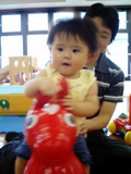 母宛にセレブ百貨店のMIKIHOUSEから召集令状が届きまして。その手紙には「夏ノ特売を開催スルノデアル。貴殿ニオカレマシテハ直チニ出頭願ウ。」と書いてありましたので渋い顔をする父上を無視して出かけました。目をきらきらさせて服を選ぶちょっすんと母上を尻目に父上はチープな服ばかりをチョイスしたためすっかり興ざめなちょっすんと母上は今回の服購入を断念しました。このうっぷんを晴らさなければ夜も眠れません(もともと寝ませんが)。ですので赤子集会所で一汗かいてから帰ることにしました。お気に入りのロディーに乗って猛獣乗りの練習です。まだ未成敗の黒猛獣をロディーにすべく猛特訓中です。張り切りすぎたのか帰りの車の中ではぐっすりでした。チャイルドシートは・・・?もちろんチャイルドシートに乗って帰りましたよ~。申し訳ありません。ちょっすん多忙(夜更かし)の為コメント返しが滞っております。必ず書きますので首を長くしてお待ちくださいませ。 ←帰ってきたら黒猛獣は逃走(脱走)していました。