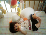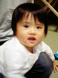 最近、父上と母上が必死です。ちょっすんが幼児になったのが気に入らないのか妙にちょっすんを赤ちゃん扱いするんですよ。今日なんて長らく荷物置き場になっていたベビーベッドを急に二人して片付け始めたと思ったら、ちょっすんをそこに無理矢理寝かせて哺乳瓶をくわえさせるのです。それだけでなく、ずいぶん使っていなかったメリーまで回して「ねんねんころり~ねんころり~♪」と子守歌まで合唱する始末。どうやらちょっすんが長時間一人遊びしたりして母上や父上を構ってあげなくなったので寂しくなったようですよ。1年前の写真を見ては「あんなに髪の毛が少なかったのに・・・今じゃふさふさ。」だの「あんなに小さかったのに・・・今じゃ3倍+αの体重。」だの言っています。余計なお世話です。ちなみに、丁度1年前のちょっすんはこんなでした。可愛らしい乳児ですよねぇ。今は可愛らしい幼児ですけどね。母上も父上も顔が凄く変わった!と言っていますがいかがでしょう?まぁ、可愛さは不変ですし普遍でもありますね。 ←ちょっすんの名声も普遍です。