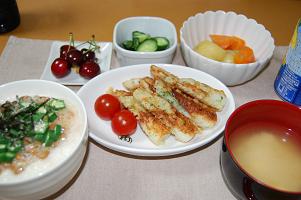 ちくわ磯辺揚げ肉じゃがきゅうり浅漬け山芋納豆オクラ丼味噌汁アメリカンチェリー焦がしましたがサックリおいしかったちくわに見えないなぁ昼はしそとしめじのパスタ今日は良い天気だったしっかり日焼け止め塗ってから外に出た土日はあっという間に過ぎてしまうな