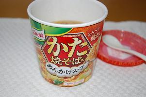 今夜はカップ麺食べよーかた焼きそばーと思ってたらかた焼きそばのあんかけスープだって…スープだ…焼きそばがカップに入ってる訳ないよなー間抜けだニャーよく見ろニャー