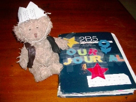 娘の小学校クラス・ルーム2のマスコットのぬいぐるみが今日我家にやって来た。彼の名前はRICKI RISK TAKER先生からのコメントがノートの最初に書いてあった・・・This year we have a very shy little bear in our class.His name is RICKI RISK TAKER.Ricki Risk Taker has a big brother, also in our class, his name is Harry Habit.Harry Habit is trying to teach Ricki Risk Taker to be braver.He wants his little brother to take more risks so he enjoys leaning about his world.ふむふむ・・・リッキーリスクテーカーは内気な小さなクマです。彼にはお兄さんがいてリッキーに勇敢な男になることを教えようとしています。そうなんだ・・・・お兄さんの命によってリッキーはリスクを受ける旅に出るって訳ね・・・。そして世間の荒波で鍛えてもらって世界を広げて来いって事らしい。なのでリッキーは毎日生徒の家にリレー式でご宿泊・子供達と寝起きを共にします。そして子供達はその日の出来事をノートに書き込みそして次の子にバトンタッチする。今日娘がこの日記に書いたのはRicki Risk Taker is in my house.He is in my tent playing in there at my house.I put him up and down.It was fun.I pretend to give him dinner.Ricki is full.Oh, マイドーター!2月に入学した時はどうなる事かと心配したがここまで文章が書けるようになったんかい・・・母・安心!それにしてもこんな可愛い顔して名前がRICKI RISK TAKERとは先生のユーモアが伝わって来る。ちなみにリッキーでは無く正しくはゥリッキーと発音するそうです。またまたこんなことやってたりして・・・ぽち!