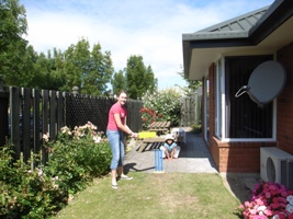 クリスマス休暇に南島の実家(クライストチャーチ)に帰省した時夫の妹が引越しをしたというので早速尋ねてみた。クライストチャーチの西にあるダーフィルドと言う街外れそこはファームの中にある一軒家で前も後ろも牧草・・・羊だらけです。柵を越えて羊が庭に来たりするので庭には羊の糞がいっぱいなのに姪のジョルジーナは慣れっこなので全く気にしていない様子。庭にネットボール(NZの女の子の中で人気のスポーツ)のゴールが作ってあり遊んだりブランコをしたり木登りをしたり・・・NZに来てからサル状態の娘は大喜びです。ワイルドに育っています。
