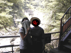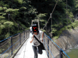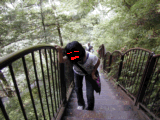 滝をたのしんだ一行は、つり橋を渡って帰ろうとした。