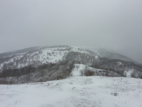 25日の土曜日は日中の最高気温が15度まで上昇し、春を思わすくらいの暖かい日でしたが、一転して、26日の日曜日はまた、真冬の寒さの一日でした!尾びやんは、平~権現山~蓬莱山を歩きました!権現山からの稜線は濃霧と強風で視界も5m位しか見えず踏み跡も強風で消されており、体感温度も-5°から-10°前後の寒さのんびりと周り景色を見ながらの余裕もなくただ、ひたすら雪と強風と格闘しながら歩きました!一週間前に同じコースを歩いたのに天気の状況によりこんなにも変わるものなのかと自然の怖さと言うものを実感しました!