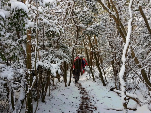 1月19日の日曜日 尾びやんが所属している山の会の新年山行で京都の西山の唐櫃越を歩きました!参加者は13名で阪急上桂駅~沓掛山~みすぎ山~JR馬堀駅まで、約5時間30分のコースを歩きました!この日は京都市内でも早朝から雪が降り、登山道にも雪が積もっており、雪景色を見ながら、日頃、なかなか話することが少ない人と親睦を深めることが出来、有意義な一日でした!