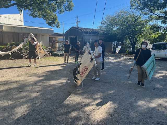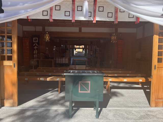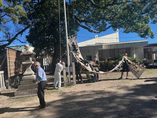 神社の飾り付けを取る、私が行った時には完了していた。