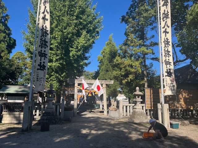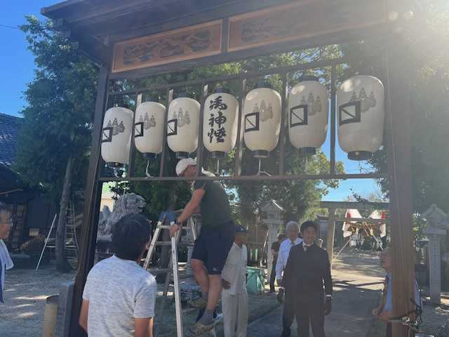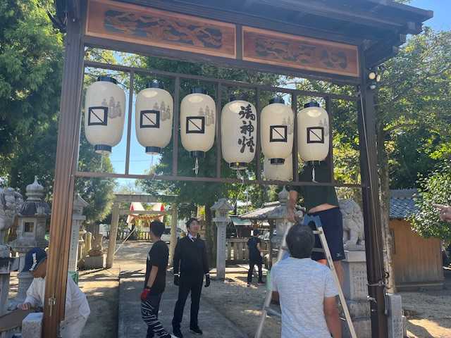 午後から神社の飾りつけ。