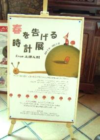 ようやく春めいて(今度こそ)来た最近、可愛い展示会を見つけました 題して“春を告げる時計たち”です。春を連想させる可愛いキャラクターを取り入れた時計たちが、展示されています色も形も、思い思いに作り手のアイデアが活かされた時計たちを見ていると、こちらもなんだか楽しくなってきて春を心待ちする気分になりますね 機能的な時計も勿論大事だけれど、玄関やアプローチなどに一寸こんな感じの遊び心のあるオブジェがあってもイイかなって気がしました。 今日も空は真っ青です。風は未だ未だ冷たいけれど、ようやく本当の春の始まりに向けて、季節が動き出したかなって気がしています。またまたお出かけが楽しくなりそうですね see you again