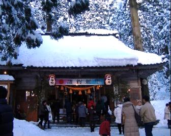 今日は主人が休みだったので、家族揃ってで初詣に行って来ました まずは近所の“熊野神社”に行きました。お神籤を引いたら、息子たちは中吉と吉で私は小吉でした。取りあえず皆“吉”で良かったと、年の初めに神様に感謝して境内の木の枝に結わえてきました。皆揃ってとにかく無事に健康で怪我もせず、幸せな日々を送れるように祈ってきました。 さて、それからひたすら山に向けてを走らせることかれこれ20~30分着いたのが“雄山神社”の中宮です 立山連山のお膝元、文字取り麓にある神社です 着いてみて痛感したのが、の量が半端じゃあないもう、に埋もれるようにして立っています。シーンとした冷気が身体をキュウッと引き締めてくれて、厳かで霊験あらたかな感じがします。境内にに本殿の他に小さい社が3カ所あります。心を込めて山の神様に、お参りをしてきました。鬱蒼とした杉の木々に囲まれ守られるようにしてある神社ですが、今日は人出も結構あり、賑やかでした。 息子たちは、幾つになっても其処は雪国の子で、お参りが終わったら二人で雪玉を当てっこして遊んでいました お参りが終わると、何だかスッキリとしたイイ気持ちになりました。 雪は今日は午後から止んでいましたが、天気予報は一週間ついています。まさに北陸の冬、満喫中デス see you again