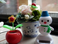 寒いデス今日は最高気温が1℃、最低気温が-2℃でしたこんこんと雪は降り積もり・・・白い壁を築いています融雪装置が稼働するとはいえ、早朝はバンバンに凍りついて、皆恐る恐るソロソロと車を走らせていますなんだか気が滅入りそうになりますが、そんなことを言っていては、北国では生きていけません 気分を切り替えて「エイ、ヤッ」とから元気でも振り絞って生きてみるのが、北国流の生き方デス リビングの片隅に、可愛いコーナーを設営して疲れたときに見て癒されています☃雪達磨のキャラはソラーで動きます。光を感じたら、ヒョコヒョコと首を動かしてツイストtwistして愛嬌を振りまいてくれますお花も同じです まだまだ1月やがて豪雪の2月も控えていますかラ・・・まだまだ当分雪とは縁がきれませんねぇ インフルエンザもまだまだ健在だとか・・・皆さんもどうぞくれぐれもお気をつけになってくださいね see you again