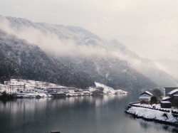 毎日、実に((((;゚Д゚))))寒い日が続いていて、朝起きるのが本当に辛い毎日です連日ずっと降り積もった雪も、午後からちょっと小休止 ちょっとひと息ついて・・・久々に『神通峡』へドライブしました紅葉の時期に、毎日のように通っていたのに、しばらく忙しくて行けませんでした。山の麓にあるので、きっと雪が沢山あるだろうと思いつつ・・・行ってみると・・・・ 雪舟の描いた水墨画のような美しい張り詰めた冷気に包まれた雪景色が広がっていました車から出ると、寒くて体が凍てつきそうになりました私のような物好きが他にもいたようで、若干人の歩いた跡がありましたよ 身が引き締まるような冷気の中、しばしこの冷厳な風景の中に立っていました。体は冷たかったけれど、心は洗われるような清らかさを感じましたピーンと張り詰めた中で、気合が入った気分です・・・まるで修行僧が滝に打たれたような気分でしたね see you again