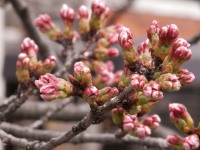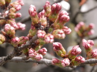 今日のような日を『花曇り』って云うんでしょうね予報によれば最高気温が13度で最低気温が1度と、まあ過激な温度変化ですが、実際のところ13°まで上がるんかいなと疑わしいこと限りなしといった様相を呈しています 仕舞いかけたニットをまたまた出して羽織りながら、重くてどんよりと垂れこめた鉛色の空を見上げて、先日観てきた松川べりの桜の蕾を思い起こしています咲いてしまえばそれはそれで綺麗なのですが「咲く前の思わせぶりな情緒たっぷりの蕾みというのも、中々乙なものよのぉ〜」と、もし織田信長が生きていたら呟いたのではないかしらと勝手に想像たくましくしながら思いを馳せています。信長は中々の風流人で、わびさびをこよなく愛でたと言われていますから・・・。 霧雨のような細かいフワァッとした雨が舞っている中で、綻びかけた蕾が再び拳を握り直していないかなと、ちょっと気にはなりますが・・・まあ週末はイイ天気になるとかならないとか言われているので、期待してみましょうか 薄桃色のベールを被り美酒を酌む 和の深み極めて悟る生きる意味 see you again