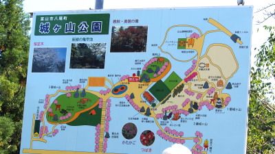 旧町を散策した後は、小高い丘陵地・城ヶ山公園にも足を延ばしました八尾の人々の憩いの場でもあり、花の名所でもあります。階段を上るのはなかなか大変でしたが、標高2020mからの景色は絶景ですぽっ