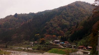神通峡はまだまだ色づきが淡かったですが、庵谷から走り続けて越路トンネル(2,820mのトンネル内を走行していると、なんだかタイムトラベラーになったような気分になりました)を抜けて岐阜県に入ると・・・山間の村は綺麗に染まりつつある紅葉の中に静かに鎮座していました