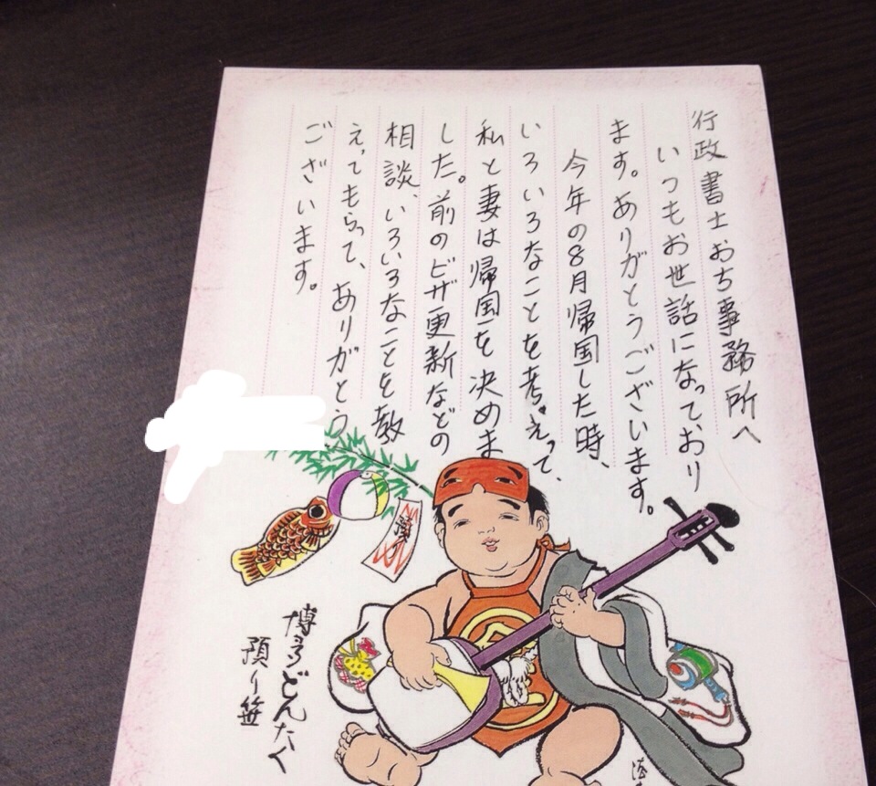 VISAの手続きでお付き合いのあった中国人のご夫婦から、心のあるお手紙を頂いた。中国に帰っても頑張って下さい。日本人だからとか、中国人だからとか関係ないな。