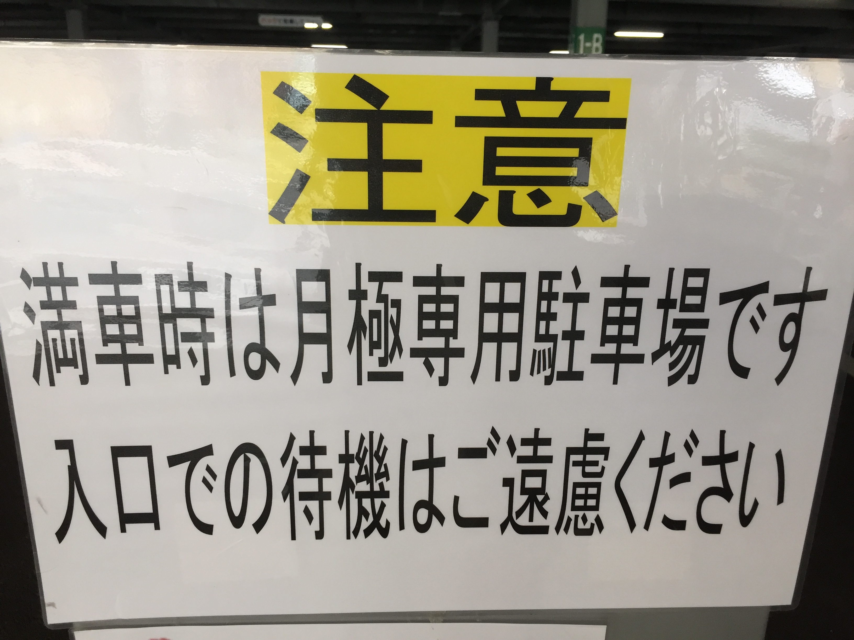 わかるけど…「満車時でも月極契約の車が入庫しますので、入口での待機はご遠慮くだい。」かな…