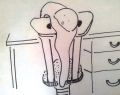 オバケを飼っています1 オバケを飼っています。 そのオバケとの出会いはこうでした。 そろそろ寒くなってきて、外出時にマフラーを使いだして2,3日後のことでした。 僕はスチール製の机を2つ使っています。 1つの机にはパソコンを置いています。 もう1つの机は手紙、はがきを書いたり、何かをメモるときに使っていたつもりですが、 今は雑多なものが収拾がつかない感じでひしめきあっています。 その机の椅子の背もたれにマフラーをかける癖があるのです。 ひと仕事終えパソコンを閉じてそろそろ外出しようと、その椅子の背もたれを見て、 僕は、あれっ、と呟きました。 去年の冬から気に入っているグリーンのモヘヤのマフラーは、 床へ滑り落ちていました。 それはいいのですが、マフラーの代わりに薄気味悪くて、 とてもとても変なものがかかっていたからです。 かたちは…麦わら帽子がグニャグニャ柔らかくなって、 内側と外側に分かれてダラリと垂れているようでした。 色は透明感がある乳白色で、何だかとても生々しいのです。 (何だろう、こいつは?) もっと離れたいのに、僕の手はその変なものに近づいていきます。 指先が触れるか触れないかのとき、 その変なものは物音1つたてず椅子の背もたれから飛び上がりました。 ああ、やはり、かたちは麦わら帽子だぞ、と想いました。 色は透明感のある乳白色のままでした。 変なものはつばを波打たせて、ゆらゆらと天井近くまで上昇し、 すぐにゆらゆらと下降してきて僕の目の高さで静止しました。 彼我の距離は1メートルほど。 そのときに僕は初めて山型の帽子部分に眼と口があるのに気づきました。 両目は本当にちっちゃくて、黒ゴマをくっつけたようでした。 口はこれも小さく直径1センチぐらいの二重丸のようでした。 ごくほんのりと紅色でした。 鼻がないのか、と僕は想いました。 すると、鼻があっていいところが盛り上がりました。 団子鼻で、大きさは大豆ほどでした。 「何だい、お前は?」 僕は思わず訊きました。 「普通に言うと」オバケだよ」 二重丸のおちょぼ口をピクピクさせて彼は答えました。 不思議な発音で、耳を通さず澄んだ声が僕の頭の中で響きました。 それが彼との会話の始まりでした。