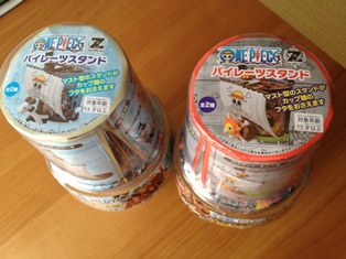 今朝、娘たちと図書館に行く途中にあるセブンイレブンでワンピース パイレーツスタンドを買いました。12月上旬から映画の公開に合わせて販売されていたのは、知っていたのですが、1つ428円で販売されていて、また家に物が増えてもいけないな~と思って、購買意欲を抑えていたのですが、今日、値引きワゴンに256円で置かれているのを見てしまい、物欲が抑えきれなくなり購入してしまいました・・。カップ麺のスタンドとして使うことはあまりないかもしれませんが、娘たちの机の上で小物置きにしてもらえたらいいかなと思ってます。↑サウザンド・サニー号とゴーイング・メリー号、どっちもいいな~。