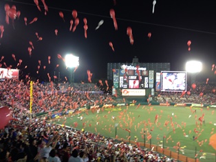 今シーズン2回目のコボスタで野球観戦(vsライオンズ)に行ってきました。先発はイーグルスが4連勝中のレイ、ライオンズが牧田。投手戦が期待でしそうです。楽天の先発レイはランナーを出すものの、粘り強く三振で切り抜けていたけど、結局、浅村、森の大阪桐蔭コンビの2発のホームランで3失点のビハインドで降板しました。最終回もランナー1・3塁で4番ペーニャに繋いだけど、敢え無く三振。結局、1対4で負けました。(イーグルスの打線、打てないな~)去年から応援に行くと、イーグルスの負ける試合が多いんですが、懲りずに月1ペースで応援に行こうと思います。↑上:ラッキー7下:ペーニャにデットボールで両チームの選手コーチがグランドへ