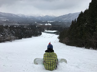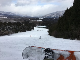 今週は上の娘と2人でオニコウベスキー場に行ってきました。今日は朝8時15分に下の娘とカミさんをバレーボール部の練習試合をする中学校へ送ってから、そのままスキー場へ移動し、夕方16時に迎えに行くというスケジュールでした。送った後、9時半にはスキー場に着いて、チケットを購入しようとしたら、チケット売り場に長い行列ができていました。10分程並んで購入ができて、それから昼ご飯までの2時間を山頂のコースでまったり滑ってました。山頂コースのコンディションはなかなか良かったです。午後からは1時間半程度しか滑る時間がなく、山頂→6番リフトのコースと滑っていたら、お迎えの時間があるのでタイムアウトになり、体力的には余力充分でしたが早めに切り上げました。来週は土曜日に上の娘が模試、日曜日は下の娘にバレーボールの大会があり、応援に行く予定なので、家族でスノボ日曜日行くのは無理そうです。その後は娘たちは定期試験準備期間に入るので、久々に職場の同僚を誘って、スキー場へ行きたいと思います。↑2番リフト途中、左下にあるコースの頂上からです。パウダーではなかったです。