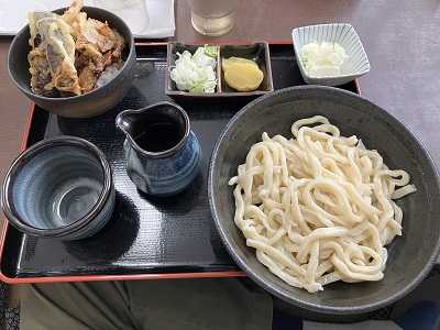 午前中に松田川ダムの一般公開に行った帰り、佐野市にある「肉汁うどん 森製麺所」へ行ってきました。13時45分に着いたのにほぼ満席でした。平日なのに流行ってます。入り口にあるタッチパネルの券売機で注文します。暑かったので熱いのは食べたくなかったので、「もりうどんセット(並)」1080円(税込)でミニ丼(かき揚げ野菜天丼)にしました。約15分で配膳されました。うどんはめっちゃコシが強いです。ここまで強いのは初めてです。かき揚げ丼も美味しいです。もりうどんだけだとあっさりなので、油ものは合います。暑かったので、冷奴も良かったです。なかなか腹パンになるランチでした。麺にコシがあるので茹で時間が長くなるのは仕方ないかも。また行きます。「もりうどんセット(並)」1080円(税込)でミニ丼(かき揚げ野菜天丼)メニューです。他のセットメニューもあります。
