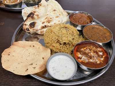 代休だったのでインド料理の店「SUZUKI PUNJAB RESTAURANT」にランチを食べに行ってきました。13時くらいに着いて、先客は居ませんでした。ビリヤニが食べたかったので、ランチメニューでカレー3種とナンとパパド、サラダ、ドリンク、デザートのセット、カミさんはカレー2種類とナン、サラダ、ドリンク、デザートのレディースセットにしました。最初にドリンクで選んだラッシー、その後、甘いドレッシングのかかったサラダが出ました。その後にメインのセットが出てきました。ナンだけでもお腹いっぱいって感じでしたが、ビリヤニのセットにしたので完食できませんでした。カレーも具材たっぷりで量も多めでした。カミさんがテイクアウトの容器をもらえると知っていたので容器をもらって持ち帰りました。その量だけでもテイクアウトで2食分購入したみたいな感じでした。最近はたくさん食べられないので、もっと量の少ないセットにした方が良かったなと反省です。今度は注意して注文します。PS 食後4時間たっても胃の中がホカホカしてました。カレー3種とナンとパパド、サラダ、ドリンク、デザートのセットカレー2種類とナン、サラダ、ドリンク、デザートのレディースセット
