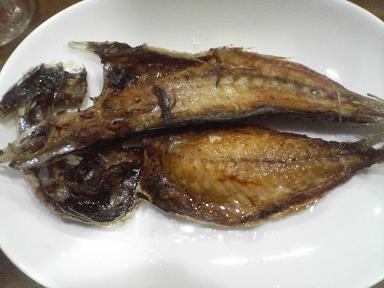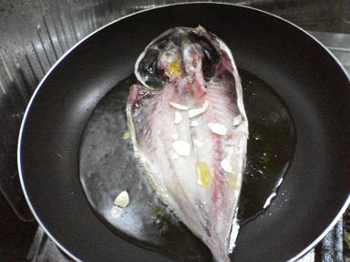 今日は鯵。いつものオリーブ油焼き・・フライパンにオリーブ油を入れ、鯵の開きを焼きます。弱火でじっくり焼きます。スライスにんにくもトッピング・・とりあえず、完成。和食?洋食?ワカメと豆腐の味噌汁があるので和食・・・今日もおいしく頂きました。