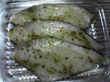 今日は鱈のバジルソース焼き。市販のタレ付きを用意・・・フライパンにオリーブ油とスライスにんにくを入れ、鱈を焼きます。薄い切り身なので、すぐに火が通ります。焦げないように焼き上げて完成。少々、身が崩れてしまいました。これは私が頂きます。豆苗の味噌汁も頂きます。今日もおいしく頂きました。