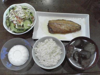 今日の夕飯は鯖。オリーブ油で焼きます。フライパンにオリーブ油を入れ、塩鯖を焼きます。オリーブ油のおかげなのか、パサパサになりません。味噌汁は茄子と油麩・・サラダも頂きます。今日もおいしく頂きました。