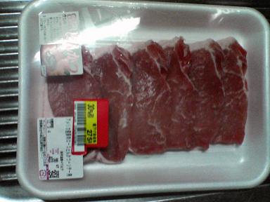 今日は豚の焼肉。昨日食べきれなかった特価の豚肉を使います・・・フライパンにオリーブ油を入れ、豚肉を焼きます。適当に返しながら火を通します。仕上げにガーリック粉を振り掛けて完成。味噌汁のかわりに昨日の鍋を流用・・・醤油でも焼き肉のタレでもおいしく頂けます。少々食べ過ぎてしまいました。