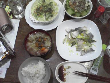 今日の夕飯は色々・・・メインはグラタン?野菜スープ付きです。キャベツと胡瓜のサラダも頂きます。何やらコハダがあるので早速頂きます。結局、おつまみになります。今日もおいしく頂きました。