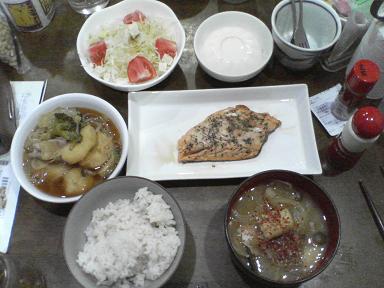 今日の遅い夕飯・・・何やら自家製のトマトがあるのでチーズを乗せてみます。オリーブ油をかけて頂きます。次はシャケ・・・フライパンにオリーブ油を入れ、シャケを焼きます。なんだか朝食みたいです・・・味噌汁はシメジ・・・とりあえず、頂きます。忙しい時は、ありあわせで頂きます。シンプルな材料でも、少し手を加えると、おいしく頂けます。