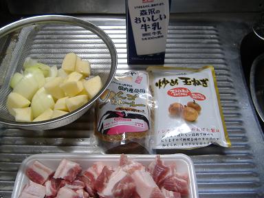 今日はカレー。頂き物のカレーセットを利用・・・フライパンにオリーブ油とスライスにんにくを入れ、豚肉から炒めます。ジャガイモと玉葱を追加。しばらく炒めて火が通ったら鍋に移して煮込みます。カレーセットのカレー粉を入れます。これまたカレーセットの炒め玉葱を入れます。レトルト品です。全体を良くかき混ぜて、しばらく煮込み、真空断熱調理器に1時間ほど入れておきます。完成。早速頂きます。今日はしばらくぶりで泳いだので少々疲れ気味・・お腹いっぱい頂きました。