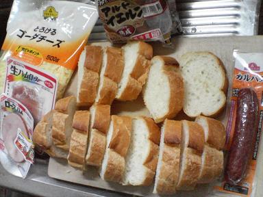 今日はピザトーストを作ります。フランスパンをベースにトッピングします。ピザ用チーズ、サラミ、ソーセージなどを乗せてオーブンで焼きます。完成。ついでにホットドッグ用パンがあったので、トッピングしてみました。これはやり過ぎ・・パン2本にむちゃくちゃなトッピング・・・アンチョビまで?オーブンではなく電子レンジで加熱しました。見た目は悪いですが、おいしく頂きました。