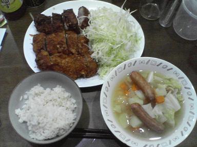 今日はとんかつ・・・特価のヒレ肉を揚げた自家製です。ついでに大根おろしも作ります。梅風味のタレを混ぜてカツに載せて頂きます。野菜とソーセージのスープも頂ます。コショーも多めにかけてみました。食欲の秋・・今日もおいしくいただきました。