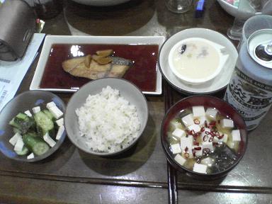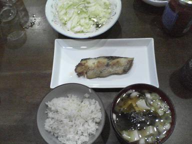 今日はブリ・・・フライパンに胡麻油を入れ、ブリを焼き、火が通ったらダシ醤油と味醂で味付けします。味噌汁はワカメと豆腐・・・胡瓜も頂きます。連休明けは何かと忙しいようです。美味しく頂いてパワーアップ?