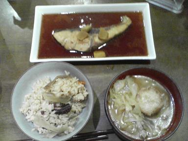 今日はブリの照り焼き。フライパンにオリーブ油を入れ、ブリの切り身を焼きます。火が通ったらダシ醤油と味醂、砂糖、生姜、胡麻油を加えてしばらく煮込んで完成。ついでにタコ飯も頂きます。市販の素を混ぜて炊飯・・・味噌汁は舞茸とキャベツと油麩・・・今日は和風のご飯でした。