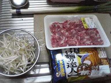 今日はつけ麺・・・とりあえず、具になりそうなものも作ります。フライパンにオリーブ油を入れ、豚肉を炒めます。ネギ、モヤシも追加、塩コショーで味付けして完成。ここで麺をゆで始めます。つけ汁も用意・・魚粉ベースのようです。麺がゆであがったら水洗いして完成。盛り付けて頂きます。濃いめの味でおいしく頂きました。