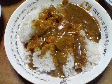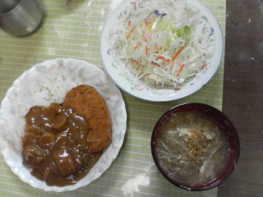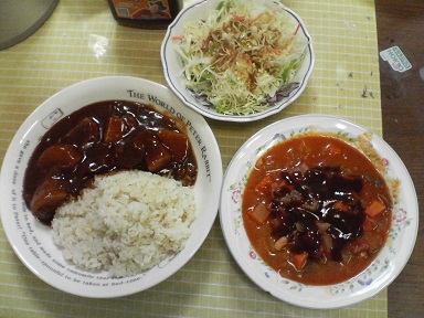 今日はカレーを頂きます。普通のポークカレー・・・キャベツサラダも頂きます。今日もおいしく頂きました。