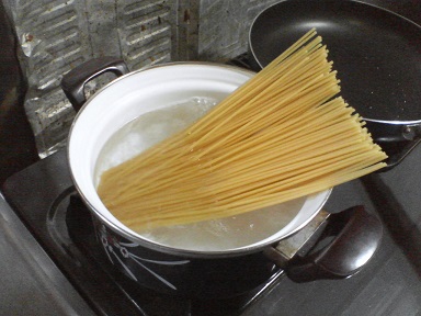 今日はスープパスタを頂きます。キャベツ、トマト、シメジ、ベーコンなどを用意・・・フライパンにオリーブ油を入れ、材料を軽く炒めます。鍋に移し、トマトを加えます。缶詰めのカットトマトとコンソメを加えてしばらく煮込み、オイスターソース、塩コショーなどで味付けし、断熱調理器に入れて30分ほど放置します。スープが出来上がるのに合わせて、パスタを茹でます。パスタを器に盛り、スープをかけて完成。サラダも頂きます。今日もおいしく頂きました。